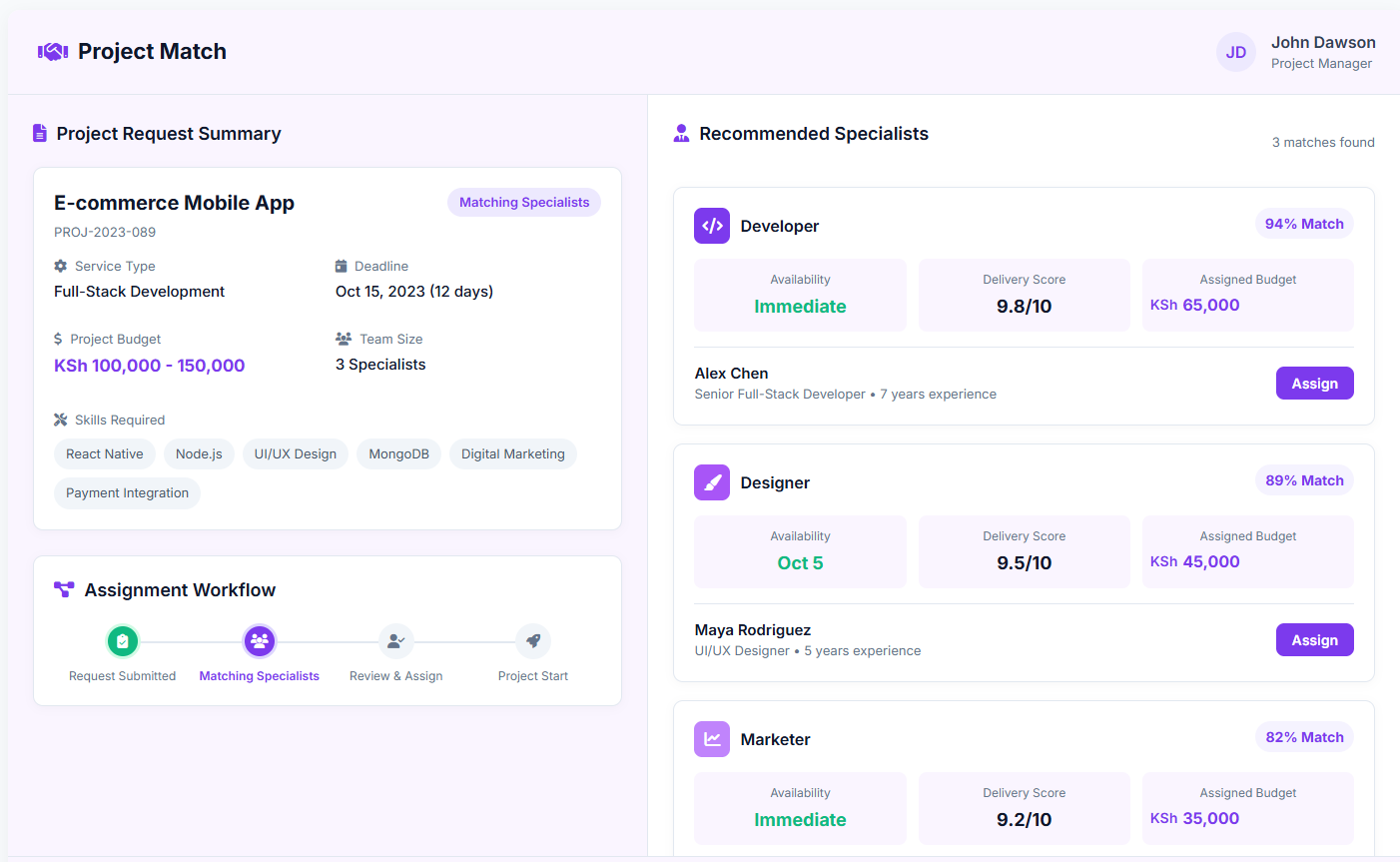 Every request is matched to the best specialist based on skills, proven delivery performance, and availability, you get reliable execution without hiring or managing freelancers.